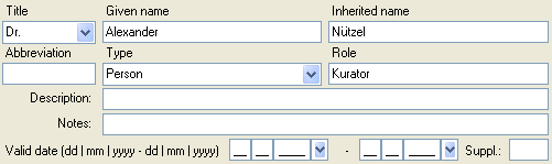 The header of the form (see below) shows the combined name of the agent, its ID in the database, the version of the dataset and the revision level. The version is set by the database and will be increased with every change in the data.