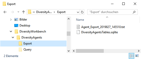 Certain directories are hidden (Query) and are handled by the software i.e. the content should not be changed by the user. The other folders are generated by the software if missing, e.g. Export for any exports (see below).