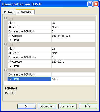Right click on the TCP/IP node and select "Properties" to open a window as shown below.