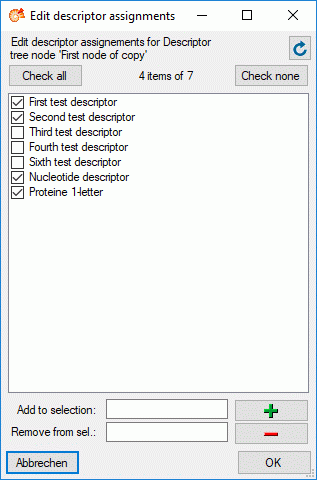After clicking this button you will get a selection list with all descriptors assigned to the project. Descriptors that are