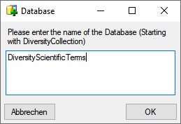 the name of the database, starting with DiversityCollection.
