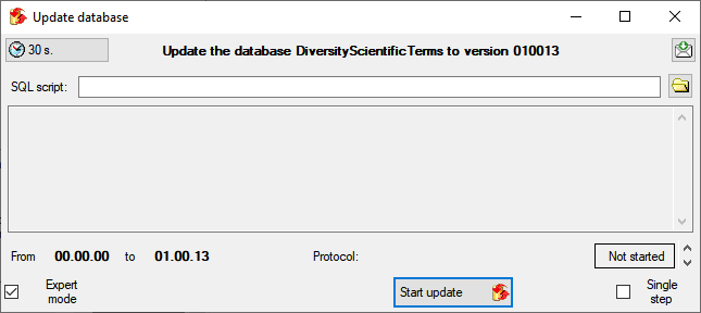 Close the window and you will be connected to the new database. In case there are additional updates available, please start the update of the database to ensure the latest version.