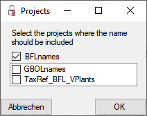 additional projects to the list in which the new name shoul be included (see below). By default only your current project will be selected.
