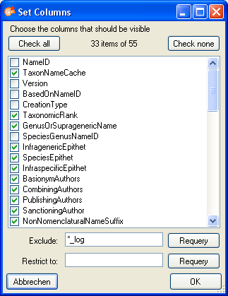 Column visibility button. A window as shown below will open, where
