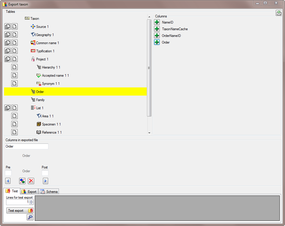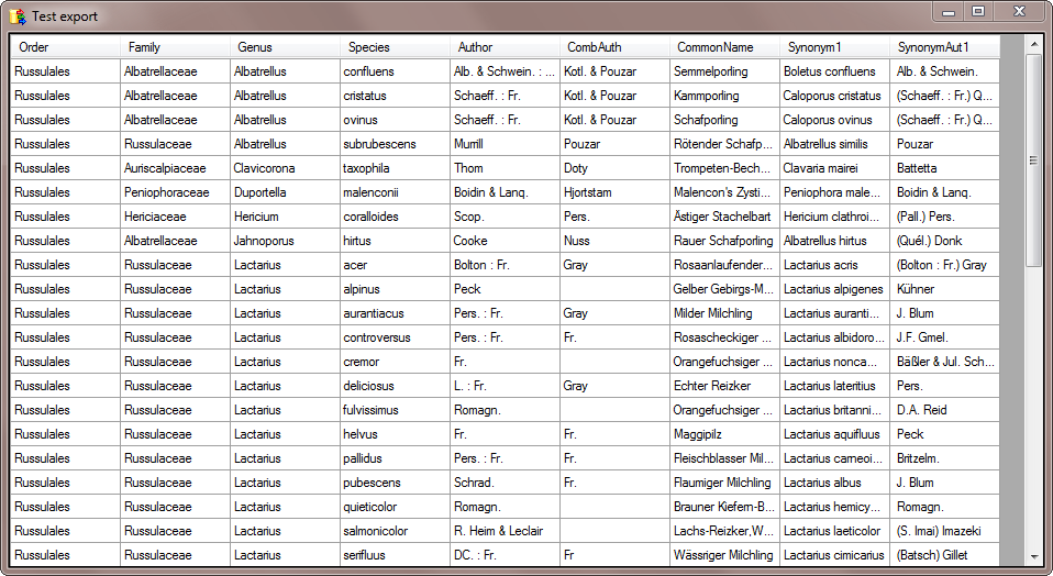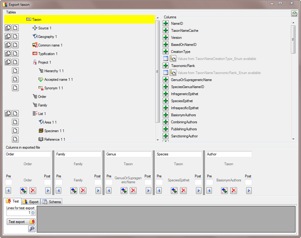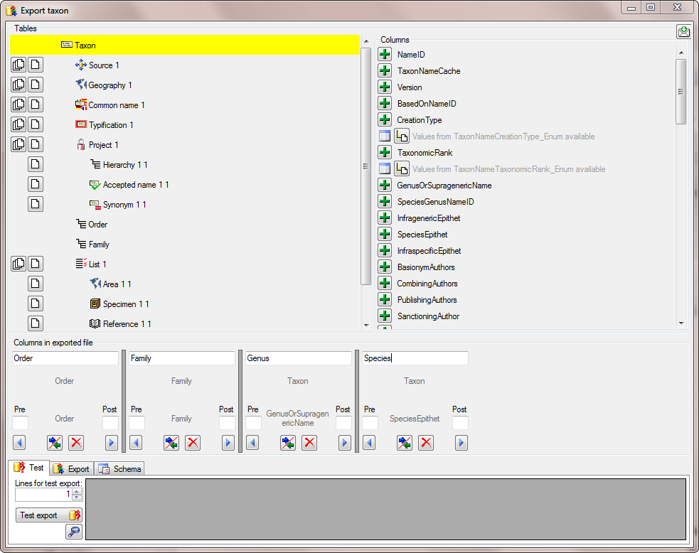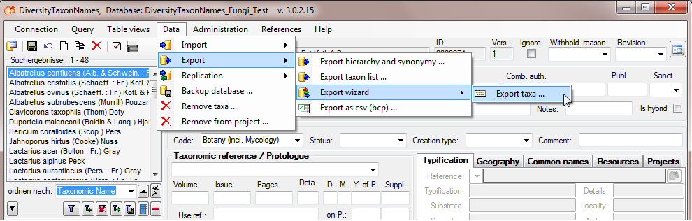 Export taxa ... from the menu.