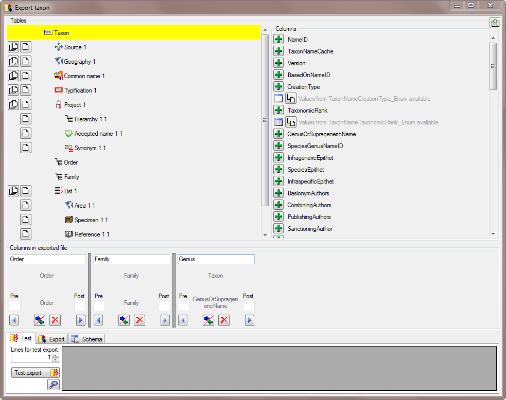 To avoid that the column name GenusOrSupragenericName appears in our export, we change the name to Genus (see below).