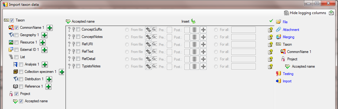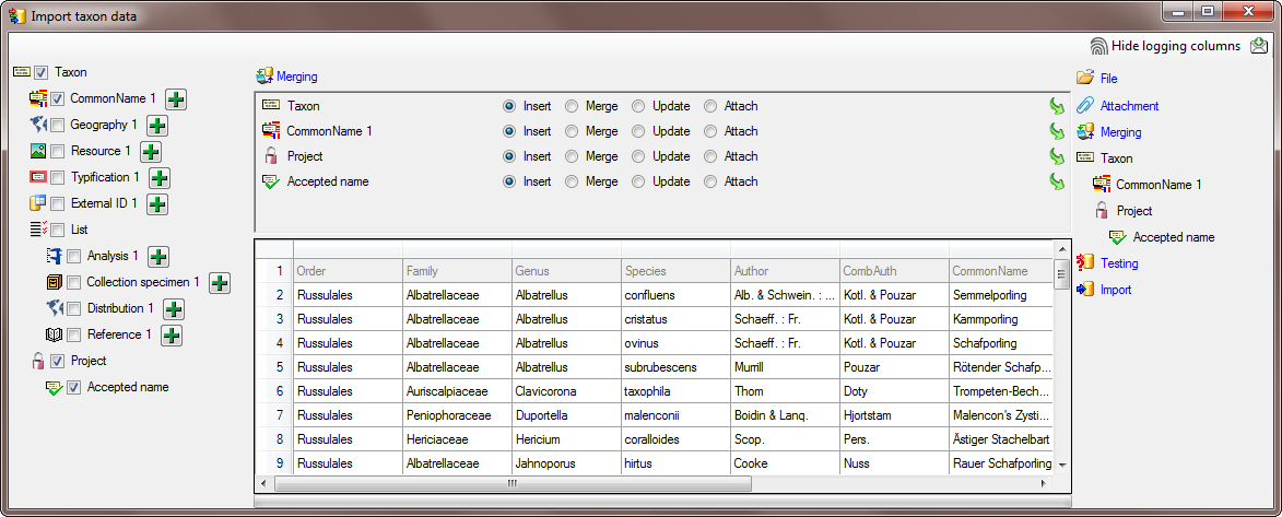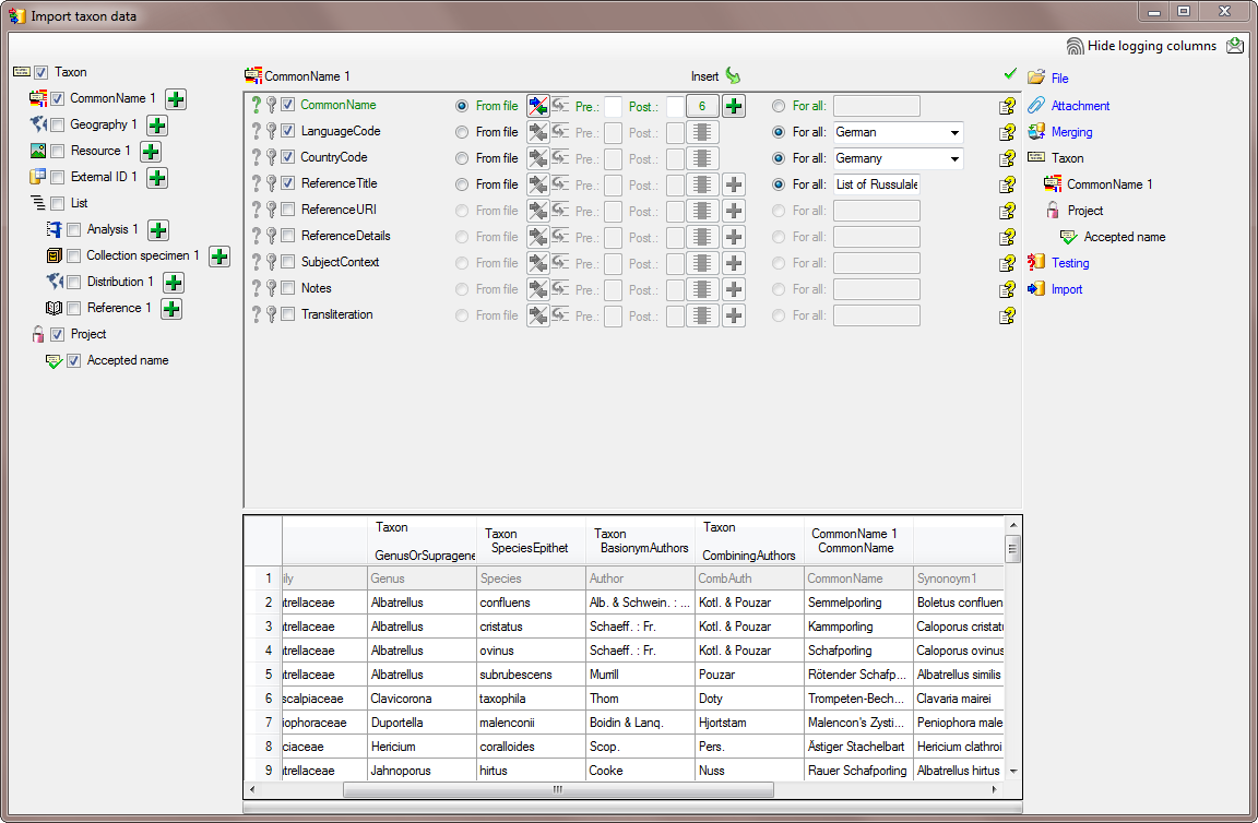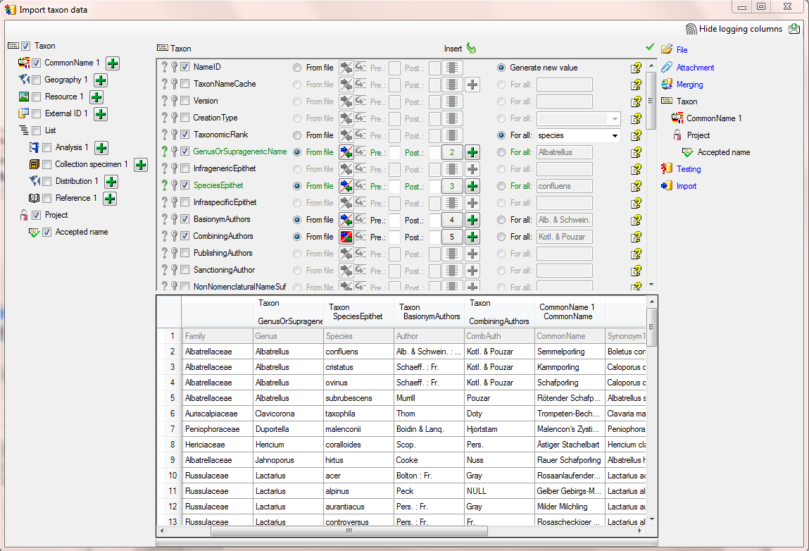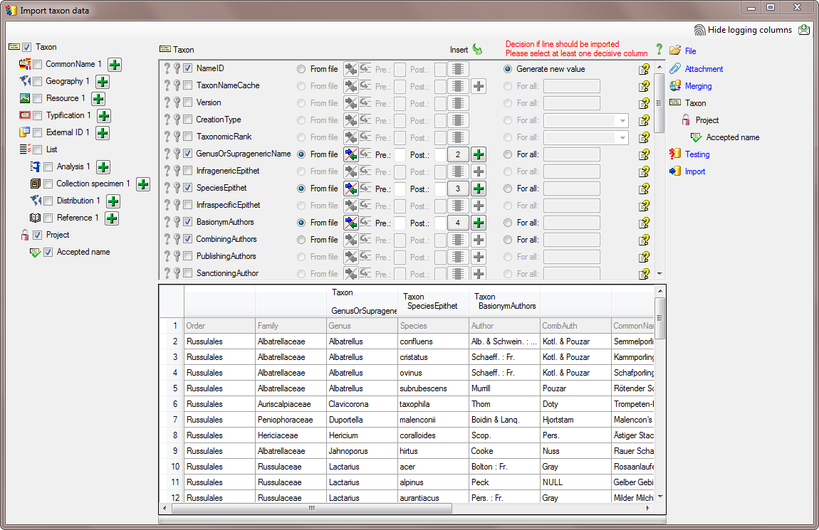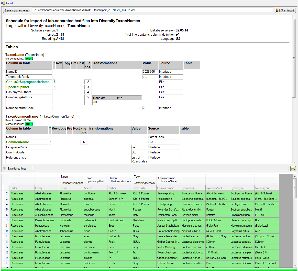 This tutorial demostrates the import of a small file into the database. The example file is included in the software. At the end of this tutorial you will have imported several datasets and practiced most of the possibilities provided by the import wizard. The import is done in several steps to demonstrate the functionality of the wizard. Please keep in mind, that this tutorial will only work as shown, if the names contained in the file are not already present in the database.