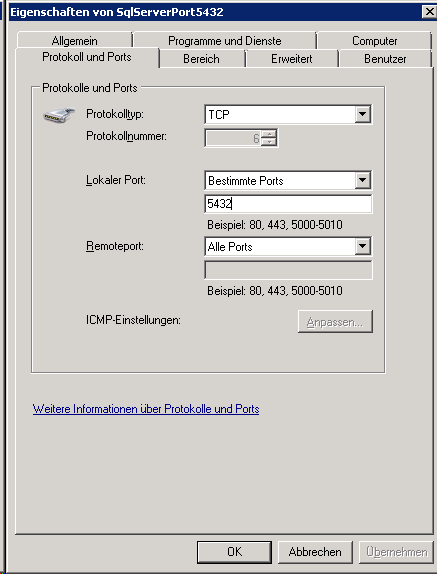 If you use a database on a server, make sure that the firewall of the server allows access via the port you set for the connections (see below).