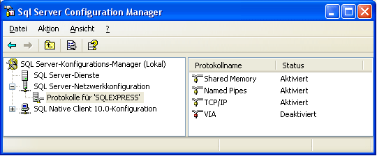 Then click on the "Protocols for SQLEXPRESS" node. Right click on "TCP/IP" in the list of Protocols and choose "enable" for TCP/IP.