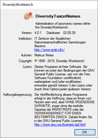For information about the version of the client application choose Help, Info...