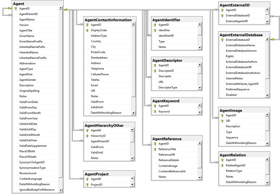 ist crated. All relations between the tables are set by using these