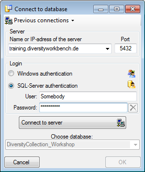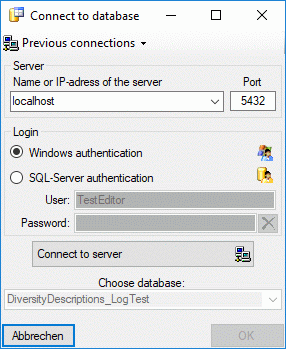 After selecting a database click on button OK.