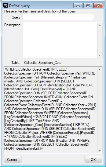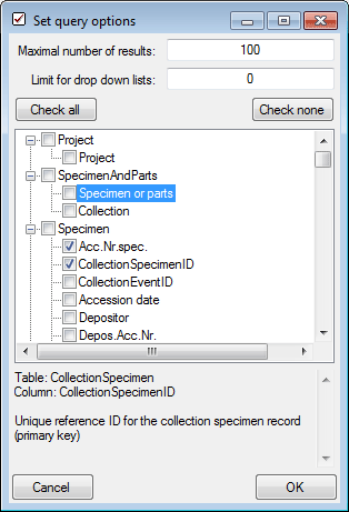 When you close the import wizard and start a query for descriptions of